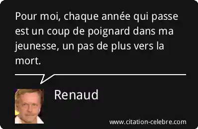 Pour moi, chaque année qui passe est un coup de poignard dans ma jeunesse, un pas de plus vers la mort.