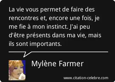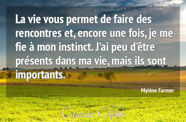 La vie vous permet de faire des rencontres et, encore une fois, je me fie à mon instinct. J'ai peu d'être présents dans ma vie, mais ils sont importants.