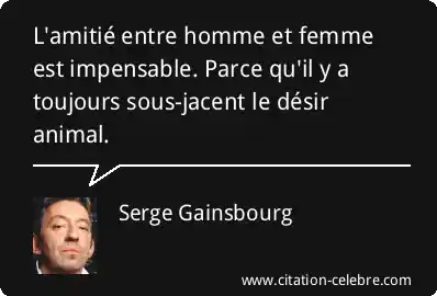 L'amitié entre homme et femme est impensable. Parce qu'il y a toujours sous-jacent le désir animal.