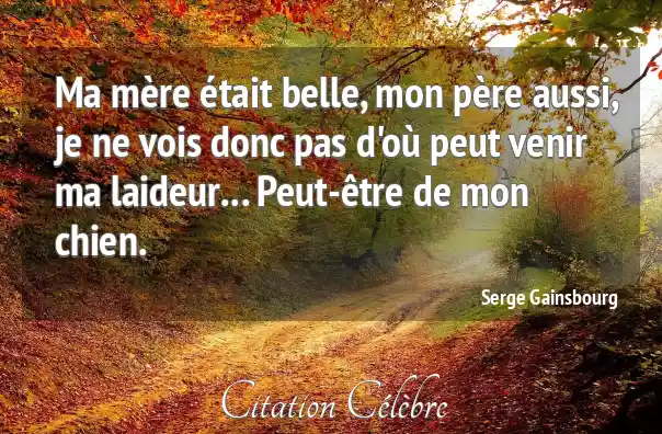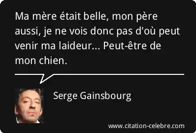 Ma mère était belle, mon père aussi, je ne vois donc pas d'où peut venir ma laideur... Peut-être de mon chien.