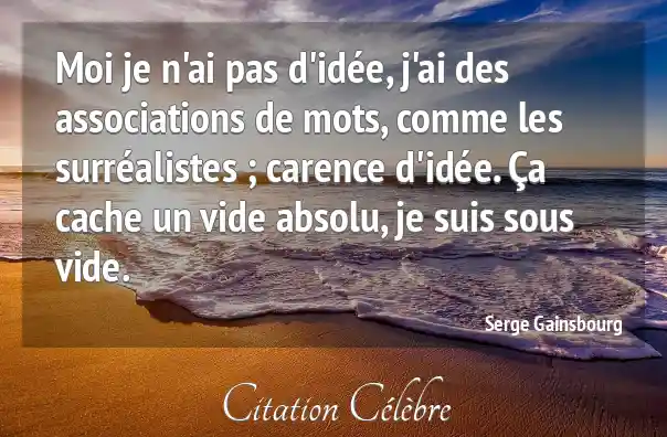Moi je n'ai pas d'idée, j'ai des associations de mots, comme les surréalistes ; carence d'idée. Ça cache un vide absolu, je suis sous vide.