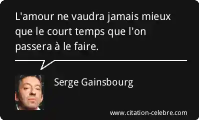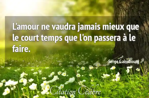 L'amour ne vaudra jamais mieux que le court temps que l'on passera à le faire.