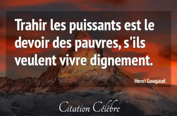 Trahir les puissants est le devoir des pauvres, s'ils veulent vivre dignement.