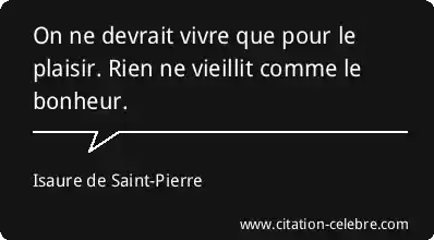 On ne devrait vivre que pour le plaisir. Rien ne vieillit comme le bonheur.