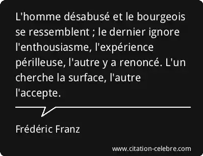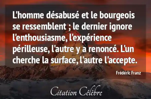 L'homme désabusé et le bourgeois se ressemblent ; le dernier ignore l'enthousiasme, l'expérience périlleuse, l'autre y a renoncé. L'un cherche la surface, l'autre l'accepte.
