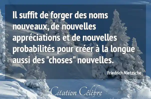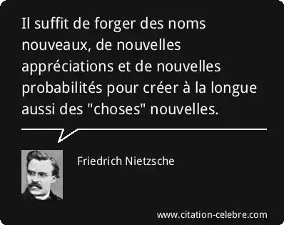 Il suffit de forger des noms nouveaux, de nouvelles appréciations et de nouvelles probabilités pour créer à la longue aussi des "choses" nouvelles.