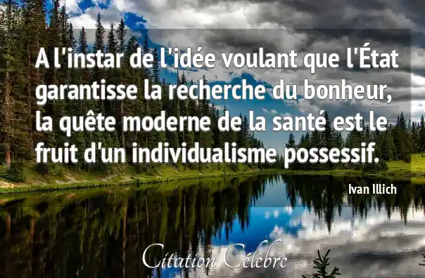 A l'instar de l'idée voulant que l'État garantisse la recherche du bonheur, la quête moderne de la santé est le fruit d'un individualisme possessif.