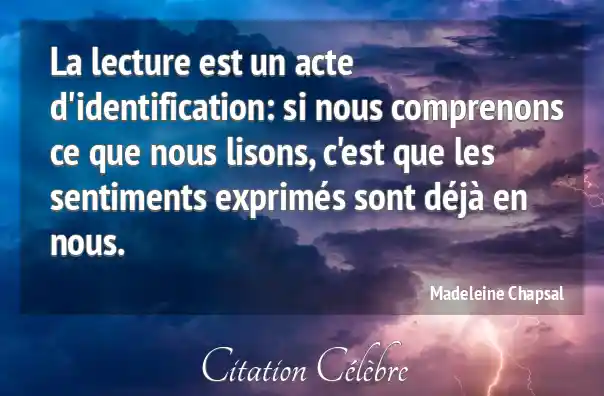La lecture est un acte d'identification: si nous comprenons ce que nous lisons, c'est que les sentiments exprimés sont déjà en nous.