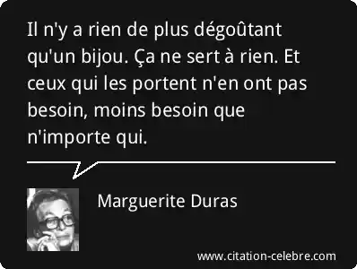 Il n'y a rien de plus dégoûtant qu'un bijou. Ça ne sert à rien. Et ceux qui les portent n'en ont pas besoin, moins besoin que n'importe qui.