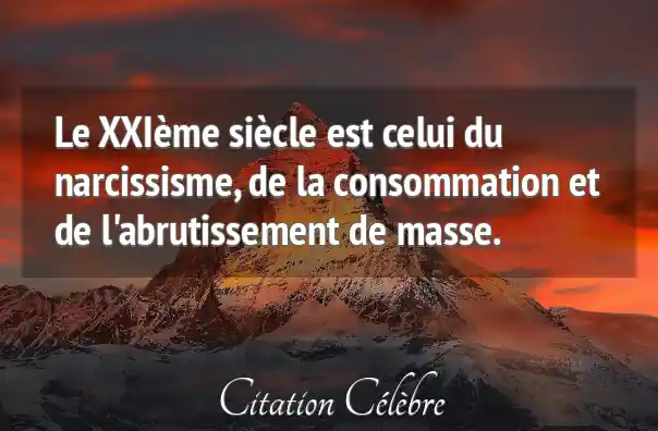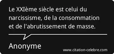 Le XXIème siècle est celui du narcissisme, de la consommation et de l'abrutissement de masse.