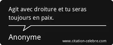 Agit avec droiture et tu seras toujours en paix.