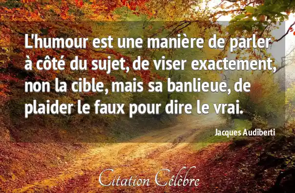 L'humour est une manière de parler à côté du sujet, de viser exactement, non la cible, mais sa banlieue, de plaider le faux pour dire le vrai.