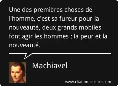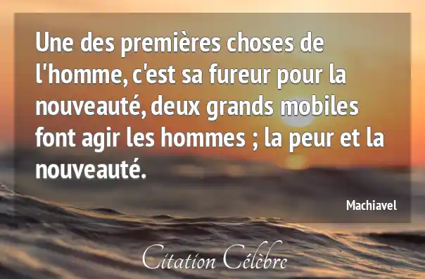 Une des premières choses de l'homme, c'est sa fureur pour la nouveauté, deux grands mobiles font agir les hommes ; la peur et la nouveauté.