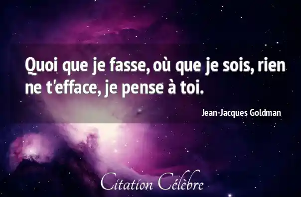 Quoi que je fasse, où que je sois, rien ne t'efface, je pense à toi.