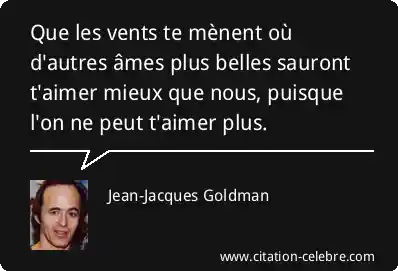 Que les vents te mènent où d'autres âmes plus belles sauront t'aimer mieux que nous, puisque l'on ne peut t'aimer plus.