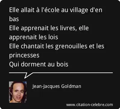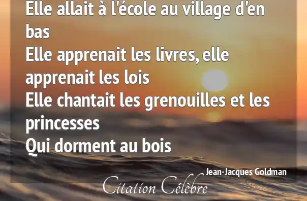 Elle allait à l'école au village d'en basElle apprenait les livres, elle apprenait les loisElle chantait les grenouilles et les princessesQui dorment au bois
