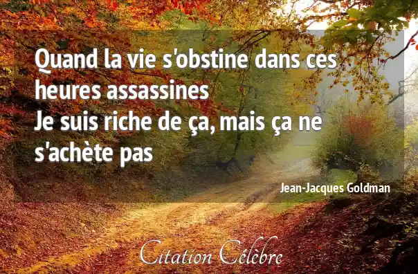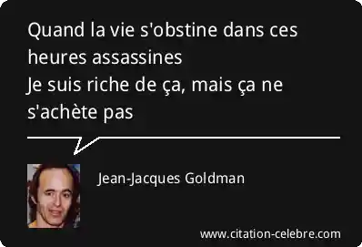 Quand la vie s'obstine dans ces heures assassinesJe suis riche de ça, mais ça ne s'achète pas