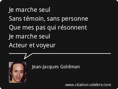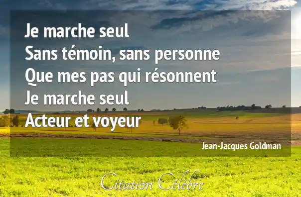 Je marche seulSans témoin, sans personneQue mes pas qui résonnentJe marche seulActeur et voyeur