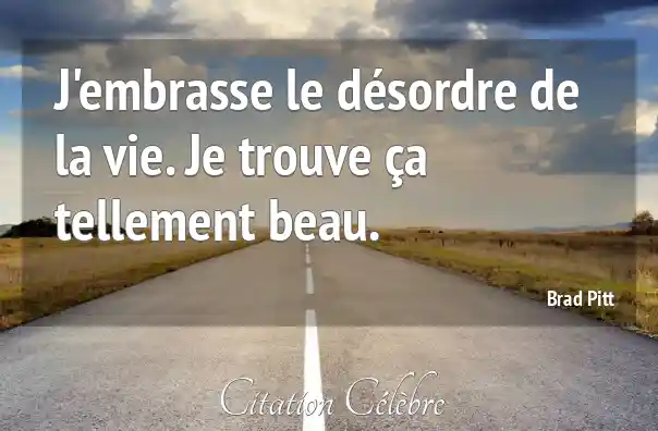 J'embrasse le désordre de la vie. Je trouve ça tellement beau.