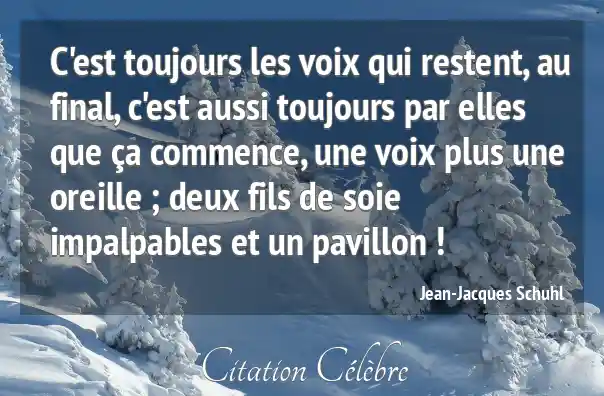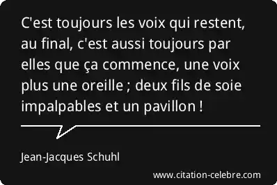 C'est toujours les voix qui restent, au final, c'est aussi toujours par elles que ça commence, une voix plus une oreille ; deux fils de soie impalpables et un pavillon !