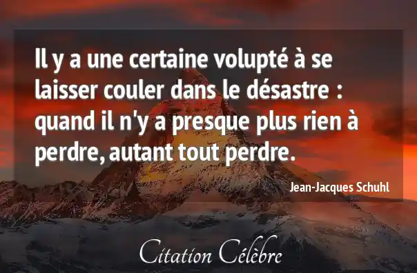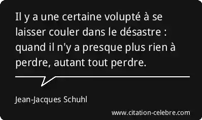 Il y a une certaine volupté à se laisser couler dans le désastre : quand il n'y a presque plus rien à perdre, autant tout perdre.