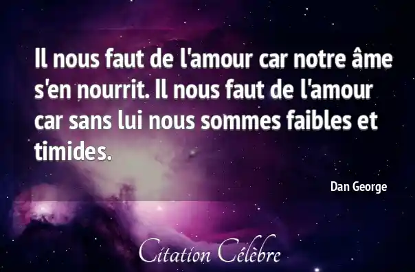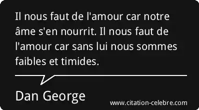 Il nous faut de l'amour car notre âme s'en nourrit. Il nous faut de l'amour car sans lui nous sommes faibles et timides.