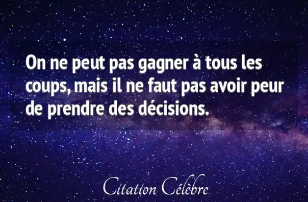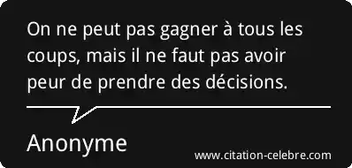 On ne peut pas gagner à tous les coups, mais il ne faut pas avoir peur de prendre des décisions.