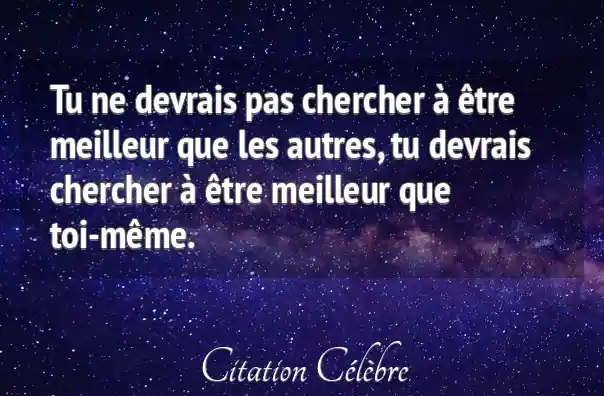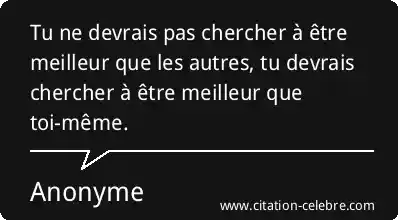 Tu ne devrais pas chercher à être meilleur que les autres, tu devrais chercher à être meilleur que toi-même.