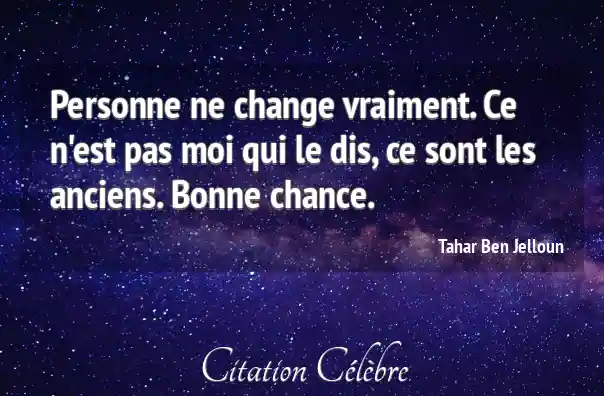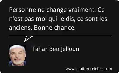 Personne ne change vraiment. Ce n'est pas moi qui le dis, ce sont les anciens. Bonne chance.