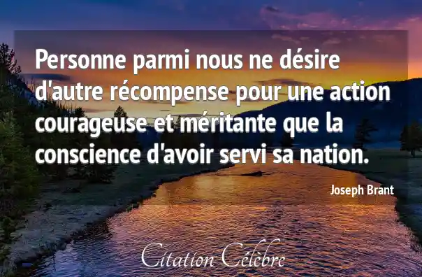 Personne parmi nous ne désire d'autre récompense pour une action courageuse et méritante que la conscience d'avoir servi sa nation.