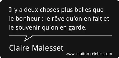 Il y a deux choses plus belles que le bonheur : le rêve qu'on en fait et le souvenir qu'on en garde.