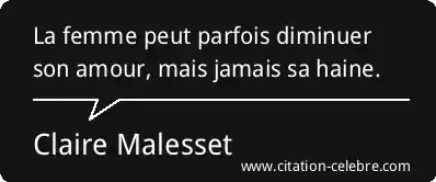La femme peut parfois diminuer son amour, mais jamais sa haine.