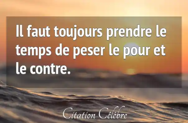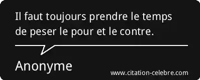 Il faut toujours prendre le temps de peser le pour et le contre.