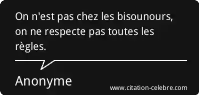 On n'est pas chez les bisounours, on ne respecte pas toutes les règles.