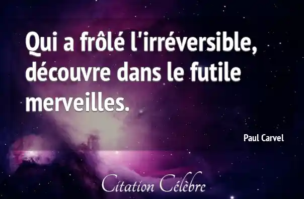 Qui a frôlé l'irréversible, découvre dans le futile merveilles.