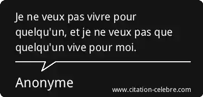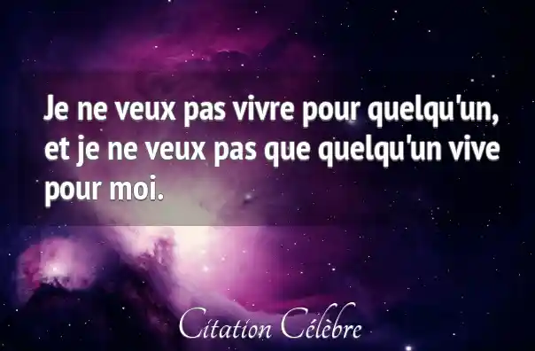 Je ne veux pas vivre pour quelqu'un, et je ne veux pas que quelqu'un vive pour moi.