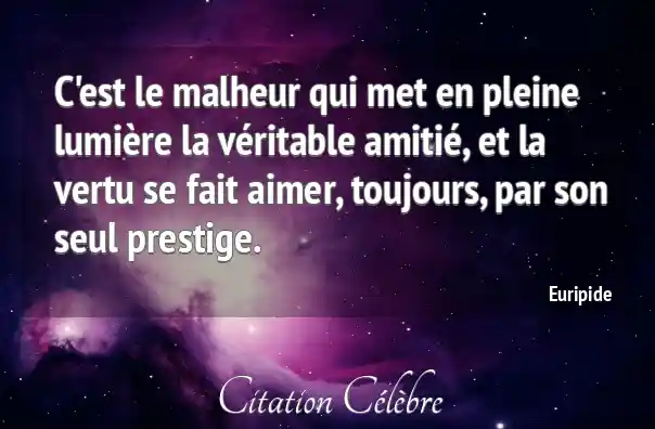 C'est le malheur qui met en pleine lumière la véritable amitié, et la vertu se fait aimer, toujours, par son seul prestige.