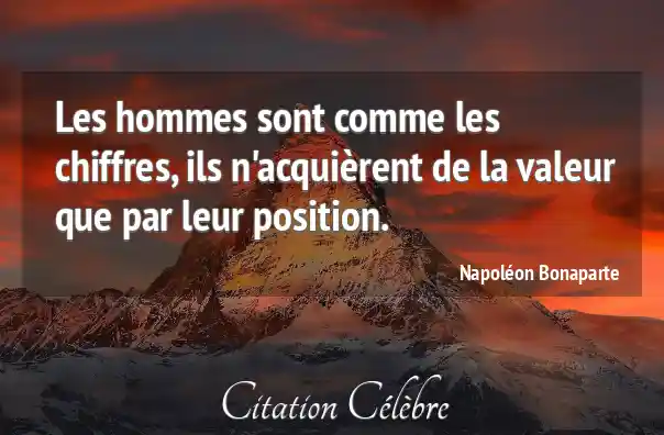 Les hommes sont comme les chiffres, ils n'acquièrent de la valeur que par leur position.
