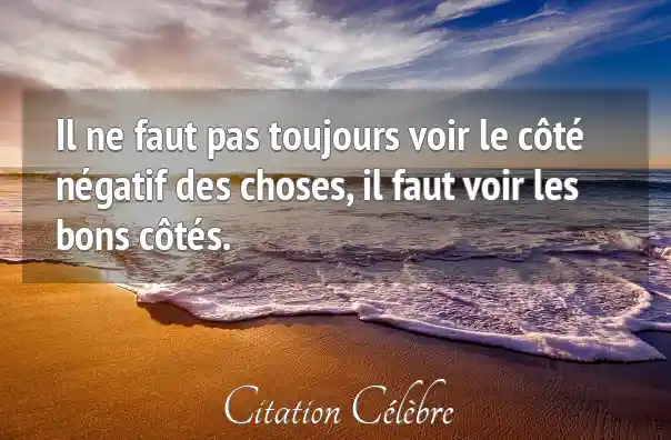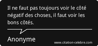 Il ne faut pas toujours voir le côté négatif des choses, il faut voir les bons côtés.