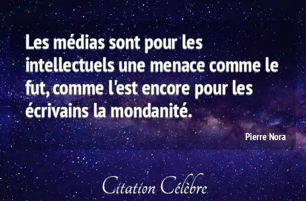 Les médias sont pour les intellectuels une menace comme le fut, comme l'est encore pour les écrivains la mondanité.