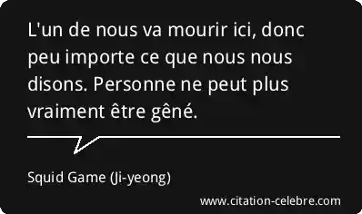 L'un de nous va mourir ici, donc peu importe ce que nous nous disons. Personne ne peut plus vraiment être gêné.