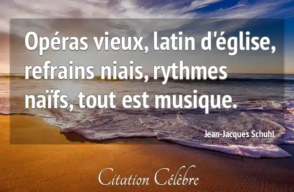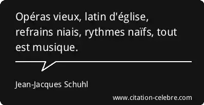 Citation Jean-Jacques Schuhl musique : Opéras vieux, latin d'église, refrains niais, rythmes naïfs, tout est...