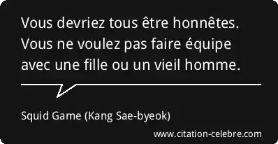 Vous devriez tous être honnêtes. Vous ne voulez pas faire équipe avec une fille ou un vieil homme.