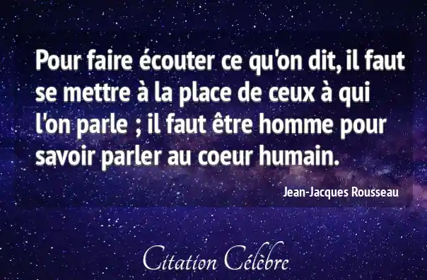 Pour faire écouter ce qu'on dit, il faut se mettre à la place de ceux à qui l'on parle ; il faut être homme pour savoir parler au coeur humain.