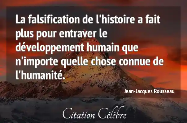La falsification de l'histoire a fait plus pour entraver le développement humain que n'importe quelle chose connue de l'humanité.