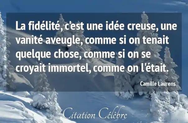 La fidélité, c'est une idée creuse, une vanité aveugle, comme si on tenait quelque chose, comme si on se croyait immortel, comme on l'était.