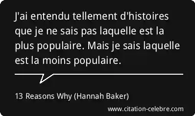 J'ai entendu tellement d'histoires que je ne sais pas laquelle est la plus populaire. Mais je sais laquelle est la moins populaire.
