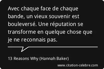 Avec chaque face de chaque bande, un vieux souvenir est bouleversé. Une réputation se transforme en quelque chose que je ne reconnais pas.