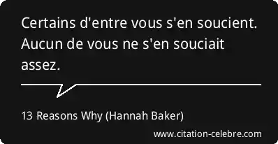 Certains d'entre vous s'en soucient. Aucun de vous ne s'en souciait assez.
