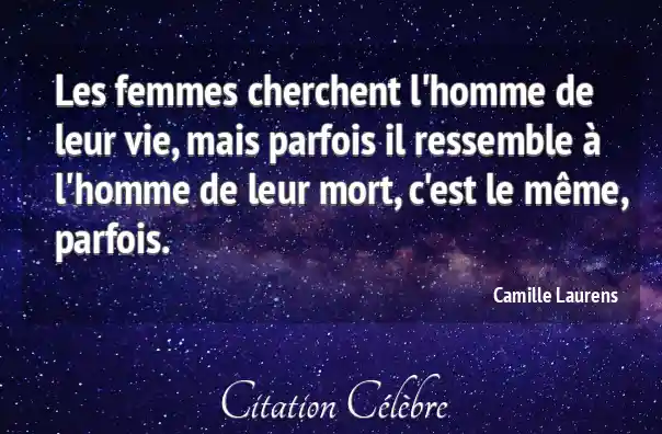 Les femmes cherchent l'homme de leur vie, mais parfois il ressemble à l'homme de leur mort, c'est le même, parfois.